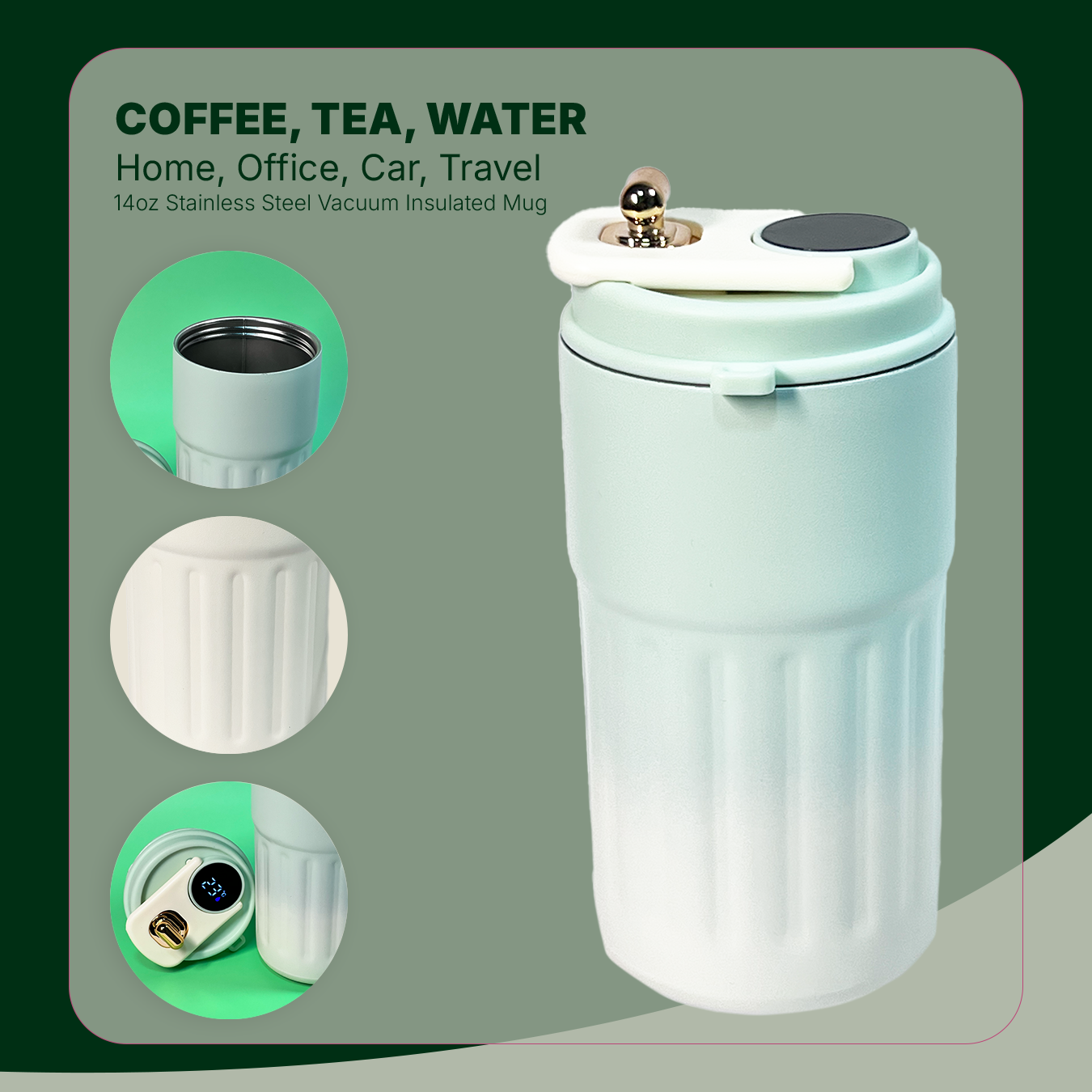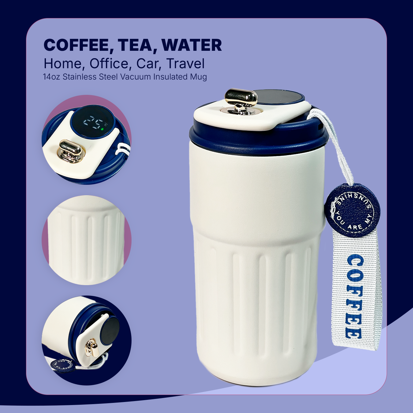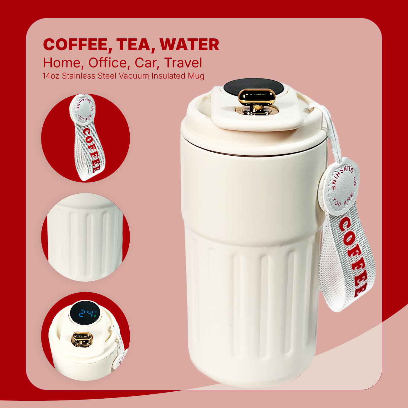 The Smart display Stainless Coffee Mug was created for those who believe that even small moments, like your daily coffee ritual, deserve great design and intelligent function. Made with premium, food-safe Stainless steel, this mug combines elegance with performance. Its double-wall insulation keeps your beverage hot for up to 6 hours or cold for up to 10, so you can enjoy your drink at the perfect temperature, wherever your day takes you. Unlike ordinary mugs, smart design focuses on comfort and quality. The smooth matte finish resists scratches and stains, while the ergonomic handle provides a natural, balanced grip. The leak-resistant silicone-sealed lid prevents spills, making it ideal for home, office, or travel. With its minimalist design and modern aesthetic, the Smart display mug blends seamlessly into any environment, from your work desk to your kitchen counter. It’s not just a cup; it’s a reflection of your lifestyle, refined, efficient, and always on the move. And because convenience matters, the Smart Mug is, giving you easy cleaning and versatility for every use. Built to last, it remains sleek and spotless even after repeated washes. Each smart mug making it the perfect gift for coffee enthusiasts, professionals, or anyone who values thoughtful design. Whether you’re brewing your first cup in the morning or enjoying a calm moment at night, it delivers warmth, comfort, and class in every sip. The design that blend technology, simplicity, and everyday luxury.